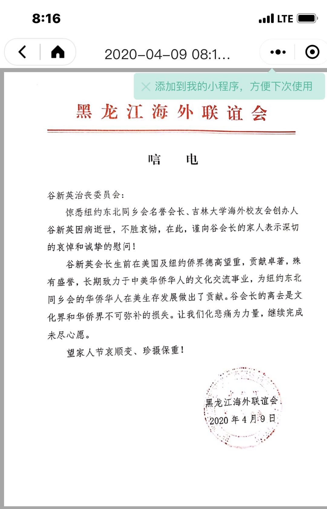 回答: 【讣告】 由 吉林大学海外校友会 于 April 09, 2020 14:55:18: