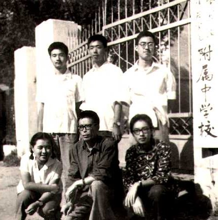 长春站到了!俺俩同在火车上又认识了的化学系的代君侠、王尔莉和计算机系的郭克俭联合